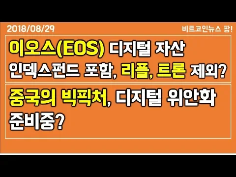 [비트코인뉴스 팡] 이오스(EOS), 새로운 디지털 자산 인덱스 펀드 포함, 리플 트론 제외 이유는?/중국의 빅픽처, 디지털 위안화 준비하나?/JP모건 최고 정보책임자 “블록체인, 기존 기술 대체할 것”